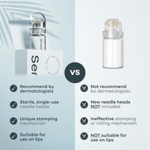 Experience next-level skincare at home with the Seranova Micro Infusion System, a powerful combination of a 0.05mm precision facial stamp and a nourishing serum infused with Collagen Peptides and Hyaluronic Acid. This innovative treatment is designed to gently revitalize your skin, improve hydration, and reduce the appearance of fine lines, leaving your complexion smoother, firmer, and more radiant.